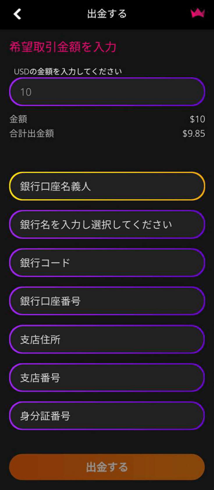 ♠入出金方法♠